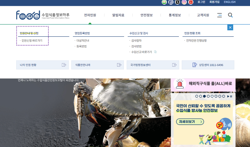 1. https://impfood.mfds.go.kr/ 사이트에 접속하고 로그인 하기
