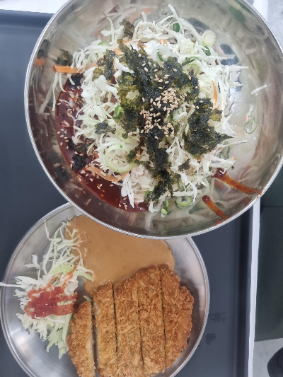 비빔국수 + 돈까스