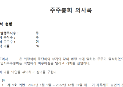 3월에 마지막날! 주주총회의사록 양식이 필요하신 분들은 아래의 파일을 다운받아 사용해보시길 바래요.