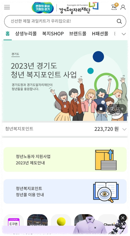 인터넷 청년 복지몰 뿐 아니라 핸드폰 어플 [경기도청년복지몰]에서도 사용 가능하니 참고해주세요.