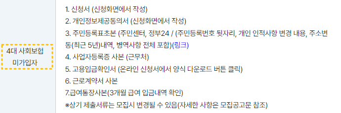 4대 사회보험 미가입자도 신청가능하니 자격 요건 확인은 필수!